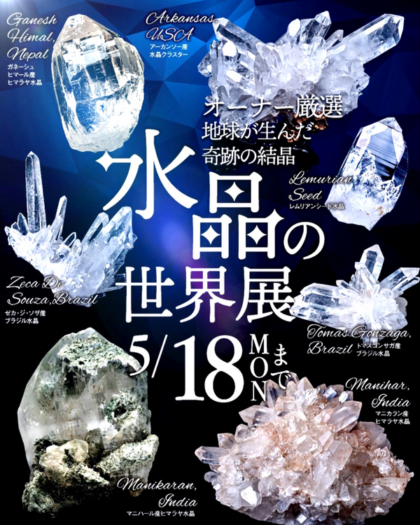 4月の誕生石という事で、予告通り本日11日より『水晶の世界展』を開催いたします。