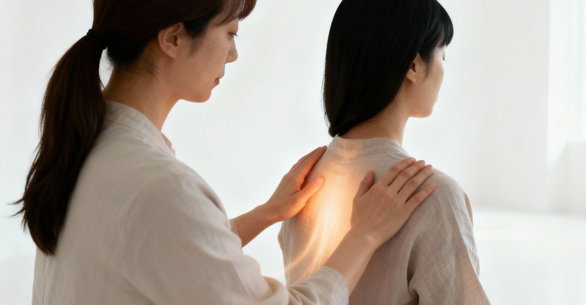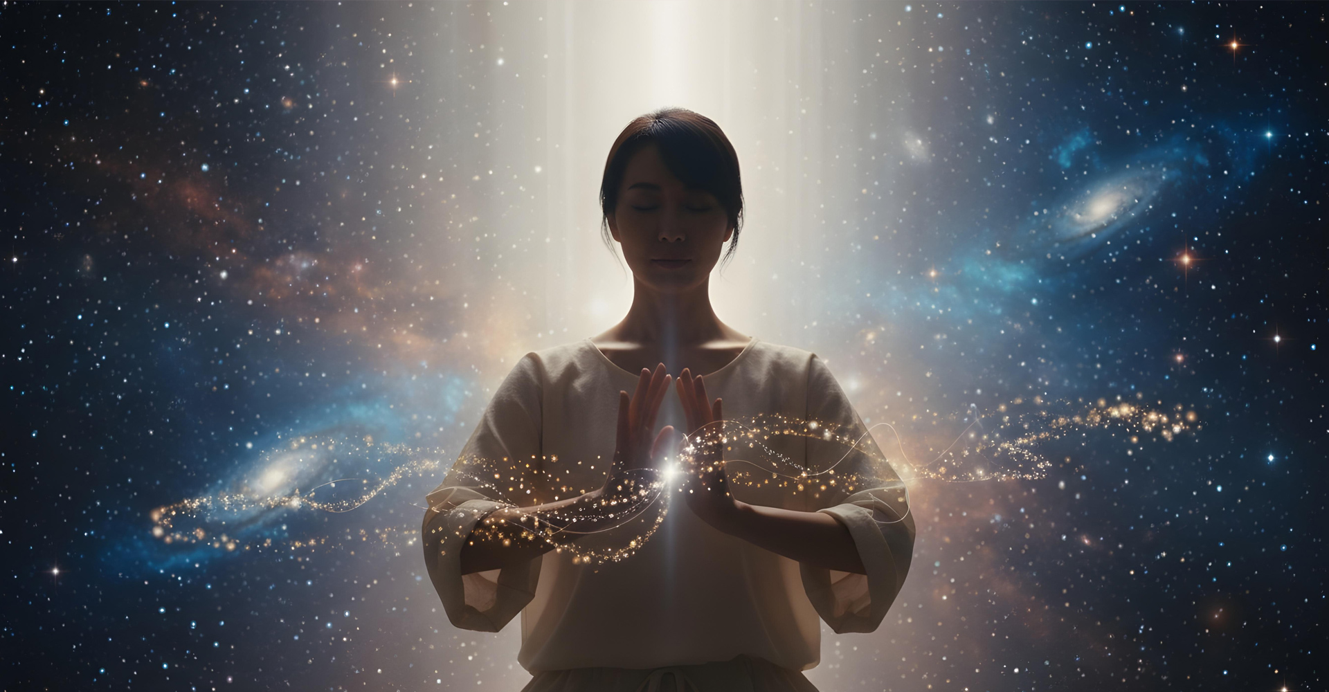 レイキとは、宇宙に満ちる生命エネルギーを体内に取り込み、その力を手から流すことで、心と身体を調和させるヒーリング法。